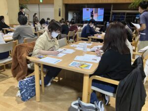 映像をもとに、個人ワーク、グループワークを行いました。職員からも多くの意見が