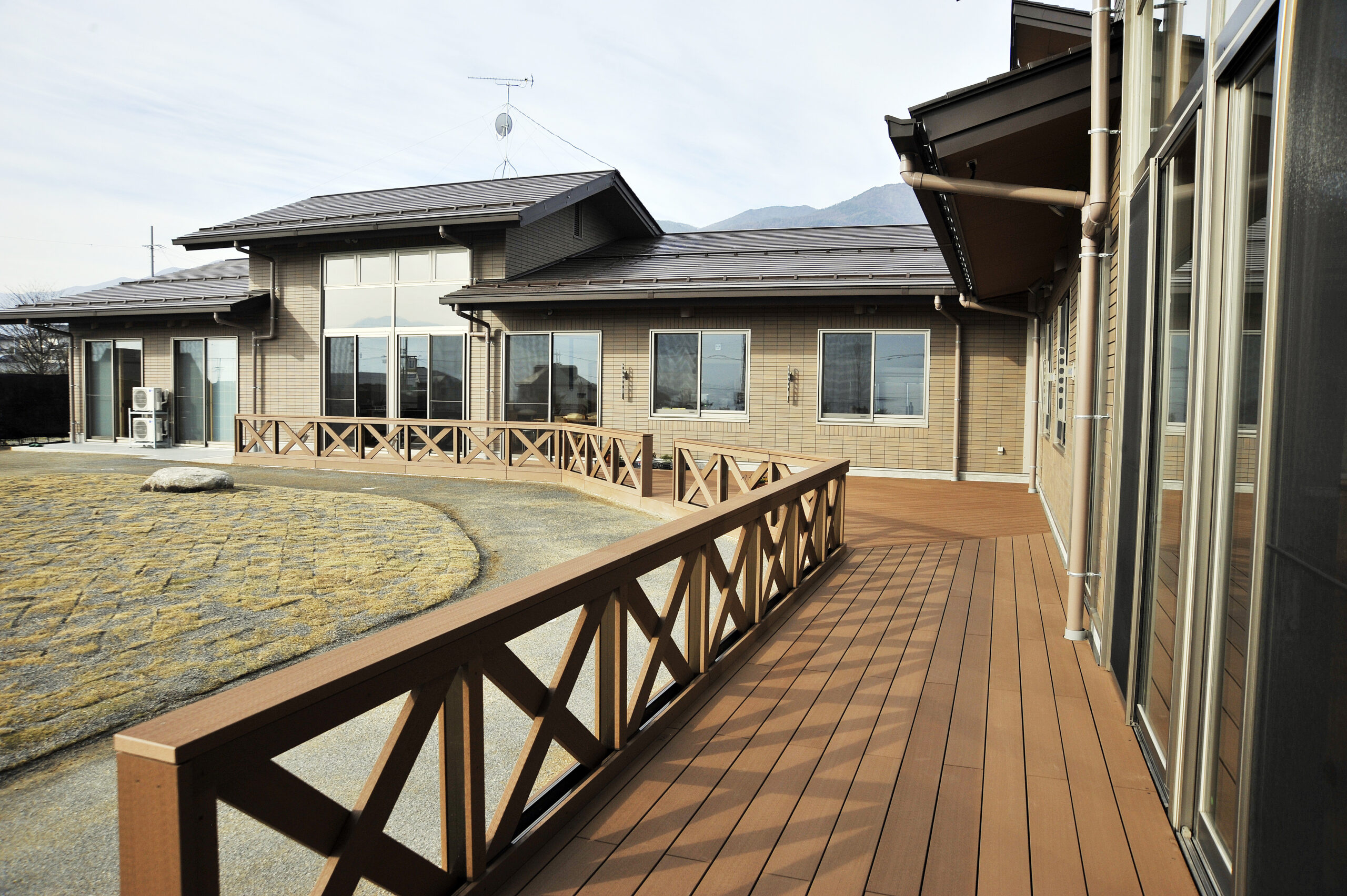 自然が豊かで静かな環境のなか、高齢者の方が「家庭的な空間の中で、自立した生活をたのしむ」ための場所を提供します。広々したウッドデッキからは、四季折々の草花や移り変わりのある風景を楽しんでいただけます。