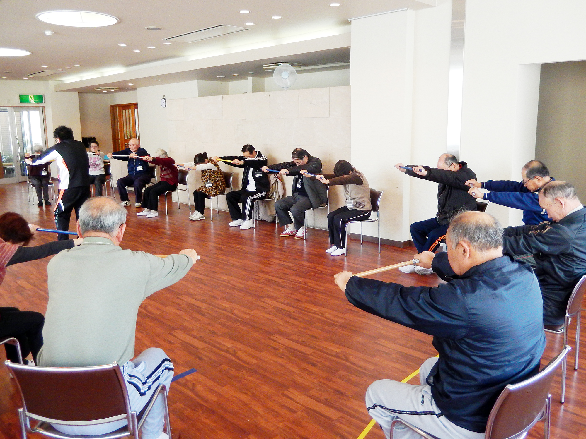 - 市町村からの委託に基づき介護予防教室を開催します。元気に生活するための体づくりを目的に、自宅でできる運動や、栄養改善・口腔機能向上指導を行います。
