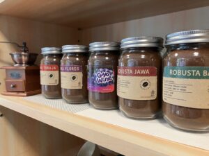 先日、インドネシアより来客があり、その際にお土産として頂いたコーヒー5種もご要望に応じ提供させていただいております。