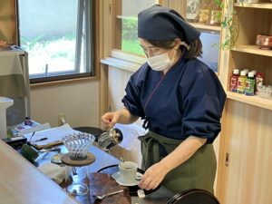 今日は、うなぎの炭火焼やフラワーアレンジメントが重なっていたため、カフェを利用される方も疎らでしたが、それでもお好きなコーヒーや紅茶など楽しんでおられました。