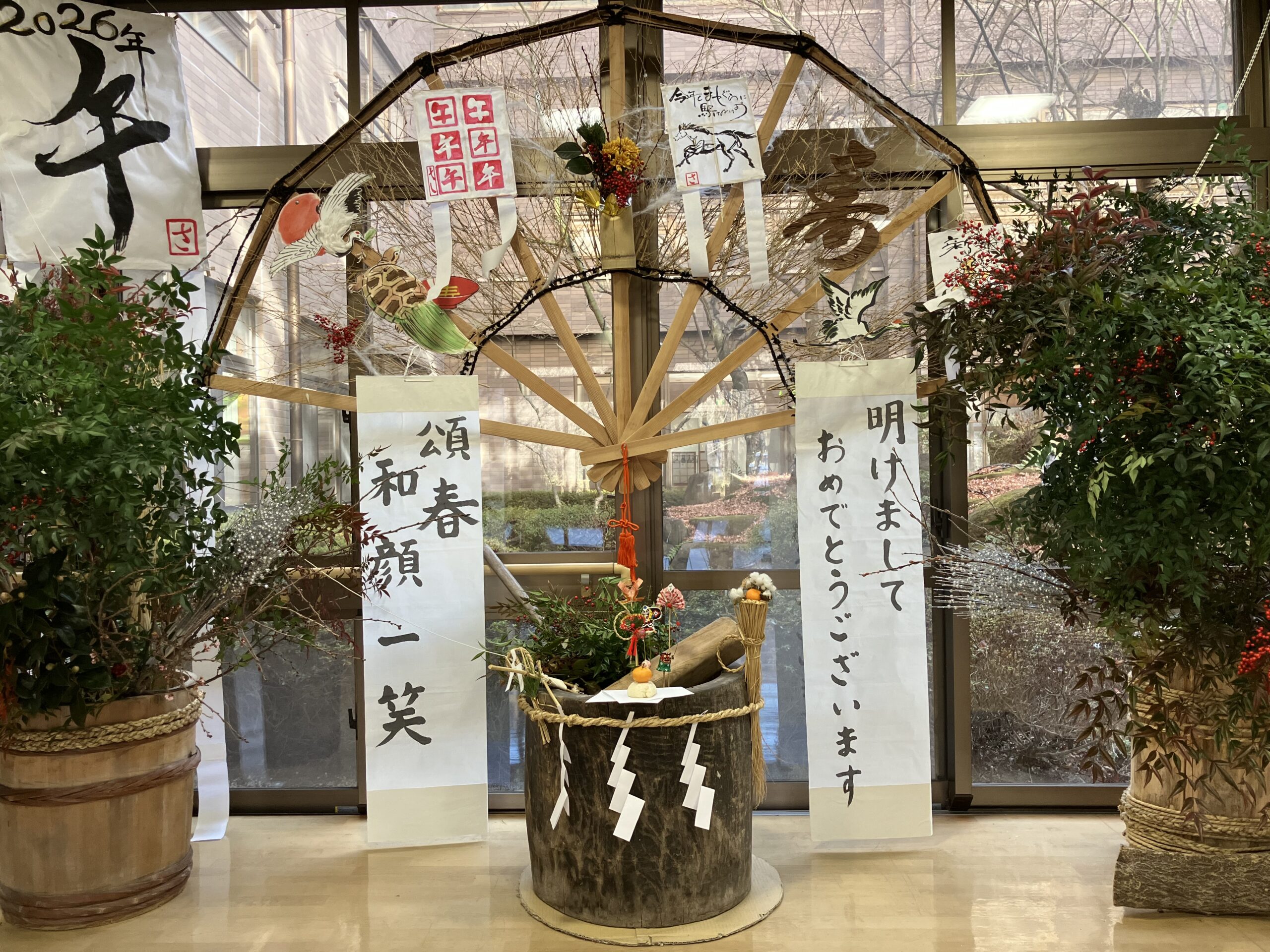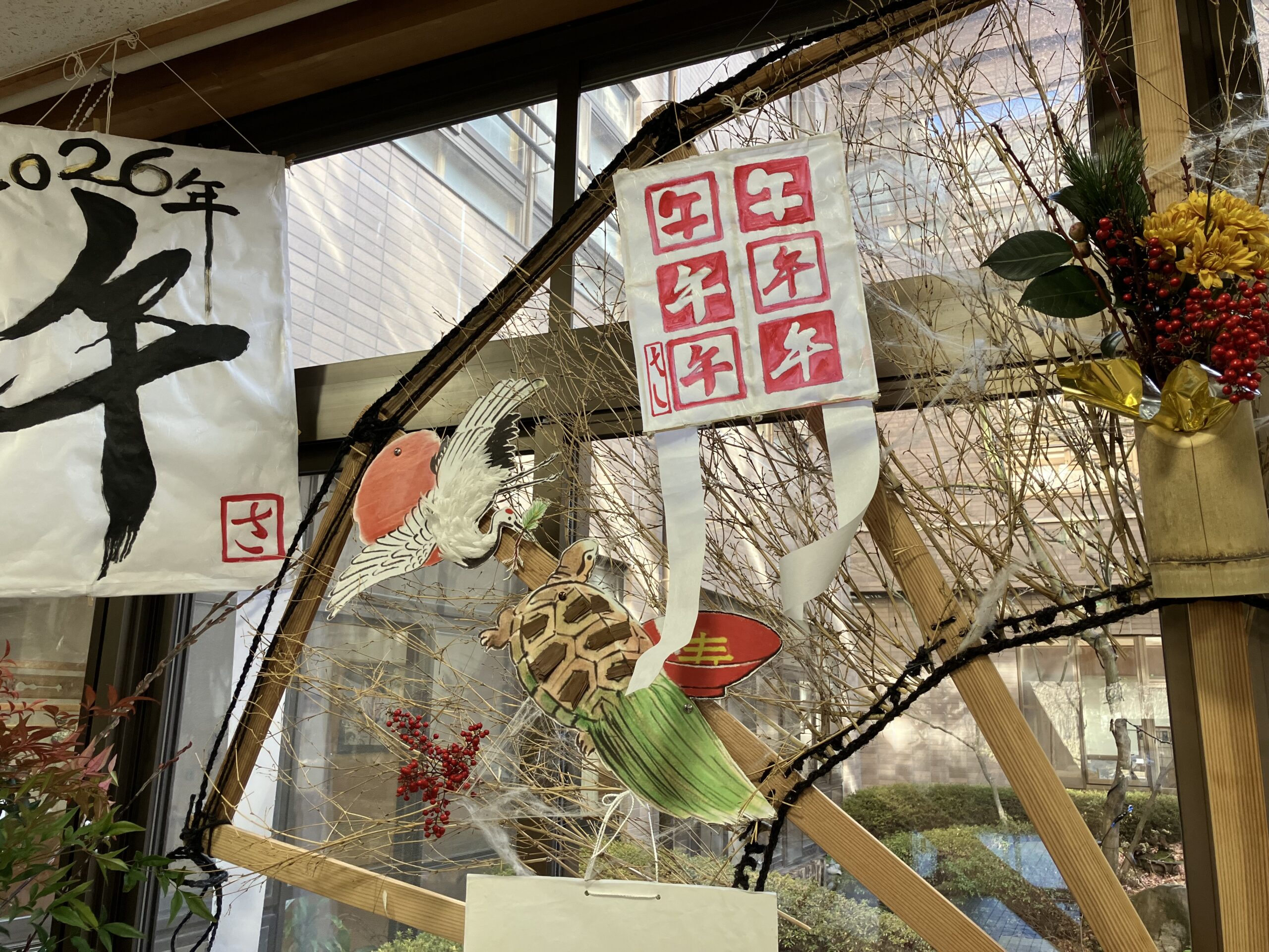 2026年01月01日 さわらび 2026 年頭のご挨拶 謹んで新年のお慶びを申し上げます。 旧年中はひとかたならぬご厚情を賜り、誠にありがとうございました。 昨年は大阪・関西万博が開催され、10月には日本で初の女性首相が誕生するなど様々なできごとがありました。地域では諏訪湖インターチェンジが開通し、地域活性化に向け、今後も様々な効果・メリットが期待される一方、近年つづく気候変動や地球温暖化により、収穫量の減少による「米」の高騰や、人里への「クマ」の出没など、広い分野で影響がありました。 施設では、昨年5月より1階の喫茶コーナーで始めた管理栄養士による「喫茶」が好評で、連日コーヒーや軽食を楽しまれる多くの利用者様の姿があります。また、利用者様のご意向に応じた日々様々な場所への外出支援サービスも定着し、多くの方にご利用いただいております。障がいや認知症があっても、自宅と変わらぬ生活をお過ごしいただける場所となりますよう今年も取り組んでまいります。 厳かで華やかな日本のお正月を感じて頂けますよう、施設玄関のオブジェをはじめとする館内の設えや、特別な日を演出する「正月料理」は全て手づくりです。施設ご来訪の際にお楽しみいただけますと幸いに存じます。 新しい1年が始まりました。 どうぞ本年も変わらぬご支援とご厚情を賜りますようお願い申し上げます。 年頭にあたり、皆様のご健康とご多幸を祈念いたしまして、新年のご挨拶とさせていただきます。 令和8年元旦 施設長 早出徳一 一覧へ