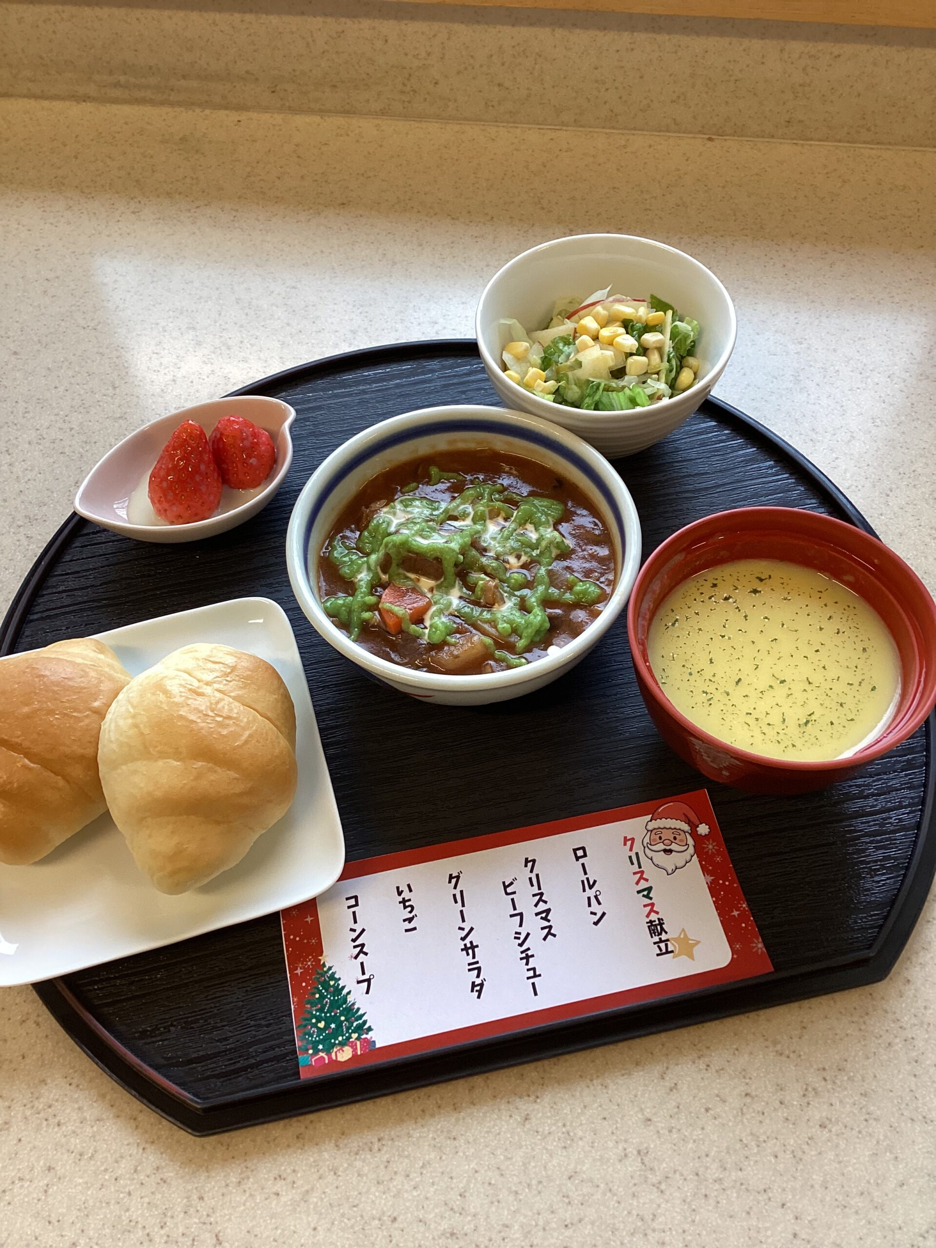 ビーフシチュー、ハンバーグは共に厨房手作りのものを提供しました!🍚