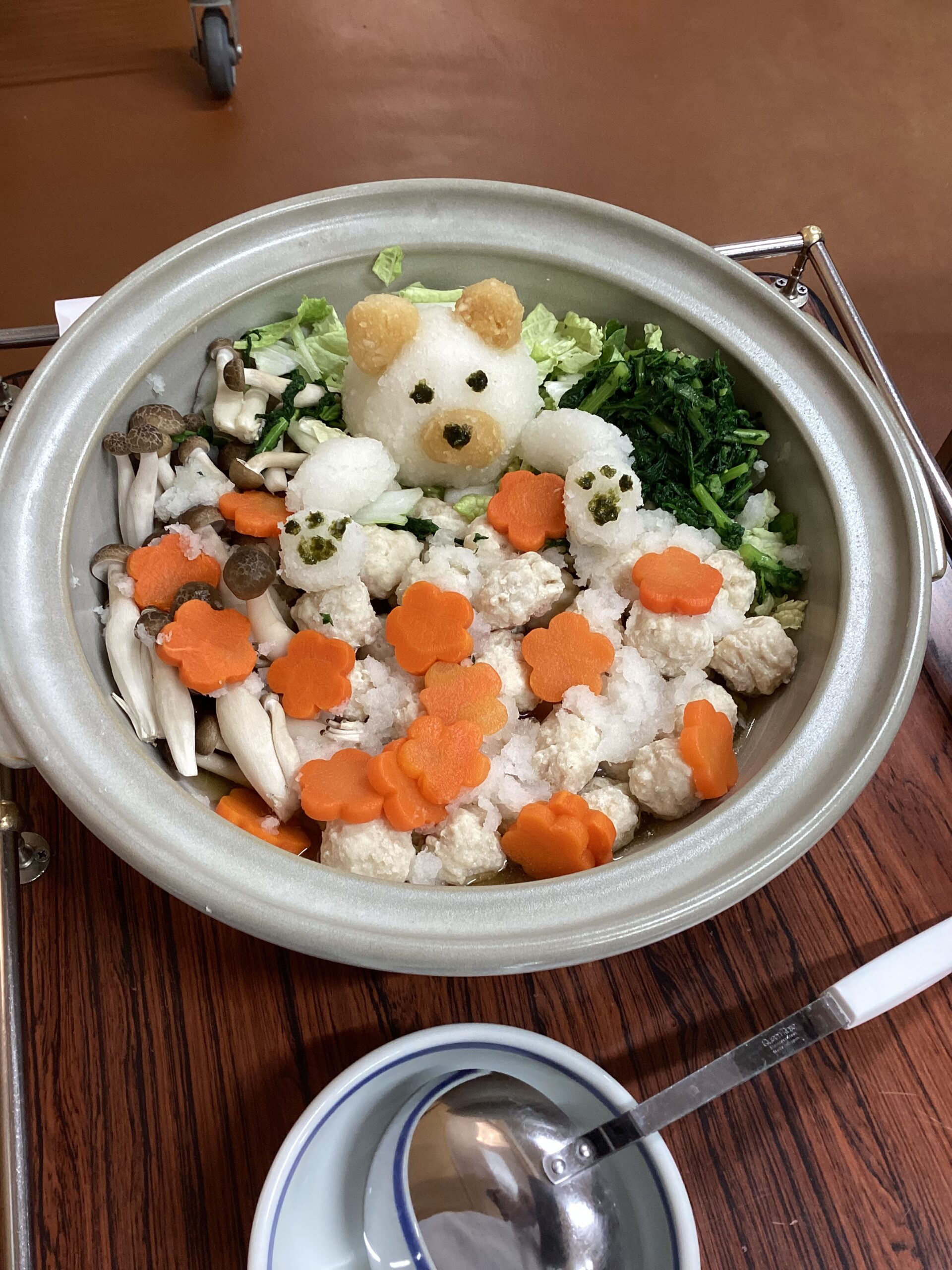 2026年04月13日 わかな 🌟リクエスト献立週間🌟 3月23~30日の昼食は、ご利用者様から食べたいメニューを伺い、リクエスト献立として提供いたしました‼ どの献立も皆様に喜んでいただけました💛 3月23日 ソース焼きそば 3月24日 海鮮丼 3月25日 オムライス 3月26日 安曇野産ふきのとうとアサリのリゾット 3月30日 肉団子のみぞれ鍋 クマさんをモチーフに盛り付けしてみました。 一覧へ